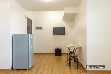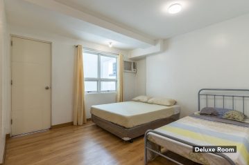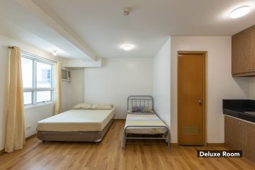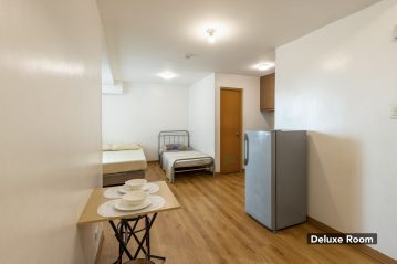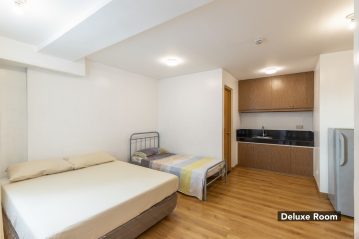 | Deluxe | Studio Type with 1 Queen Sized + 1 Single Sized Bed, Aircon, Personal Refrigerator, TV with TV Plus | 3 | 4 | 1,300.00 | 15,000.00 | plus HOA | |||